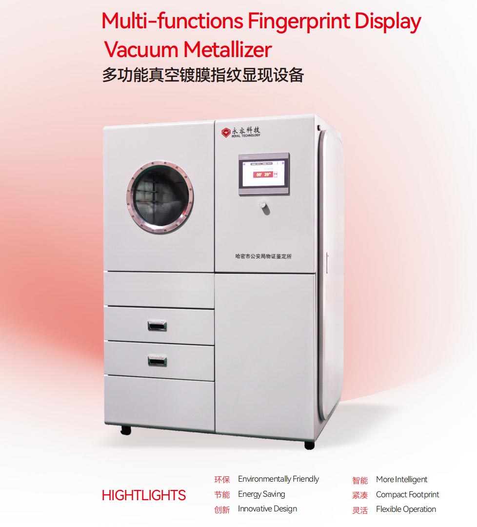 刑事侦查:在犯罪现场勘查中,对于各种光滑或非渗透性物体表面上的潜在指纹,如玻璃、金属、塑料等,真空金属化镀膜设备能够有效地显现指纹,为案件侦破提供重要的线索和证据。